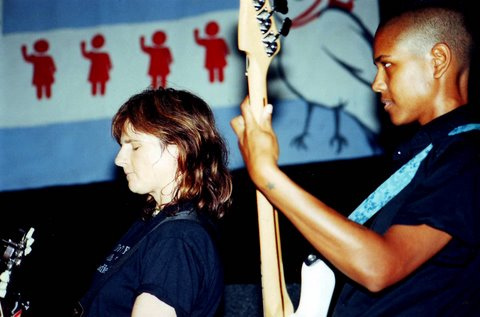 Kristen Cox: I was doing radio in college, and had fallen in love with Kill Rock Stars, and all the Olympia scene in doing college radio, so that was sort of my community, was the independent music scene in Bloomington Indiana, and I booked local bands at a club there. I moved to Chicago in ’97, like three years before Ladyfest happened, but I was always at the Empty Bottle. And I was coming out, so this interest, affinity to work with a lot of women, in producing a big event, featuring women, was maybe something really different. Because independent music had a lot of guys, and I was really attracted to the riot grrrl, so there was really a buzz, an excitement for it. But I moved to Chicago to do cultural work, so I was really interested in marrying my music performance and wanting to work in arts administration.